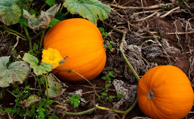 Pumpkins and squash – cut back leaves covering the fruits to help them ripen in the autumn sun.